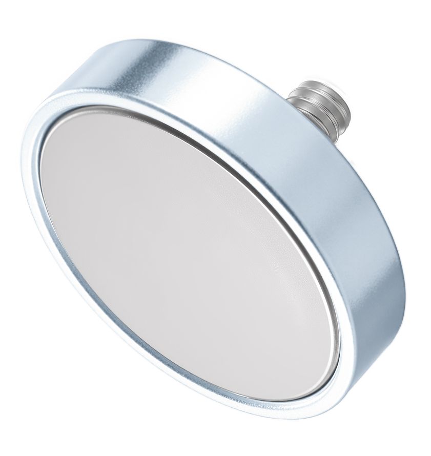 This handy and useful strong neodymium cup magnet has a strong magnet embedded inside a Nickel coated steel cup to offer the maximum gripping power. The steel cup offers protection for the magnet and concentrates the magnetic force on the magnet surface.The cup magnet has a threaded male stud that is perfect for mounting with a bolt or screw.